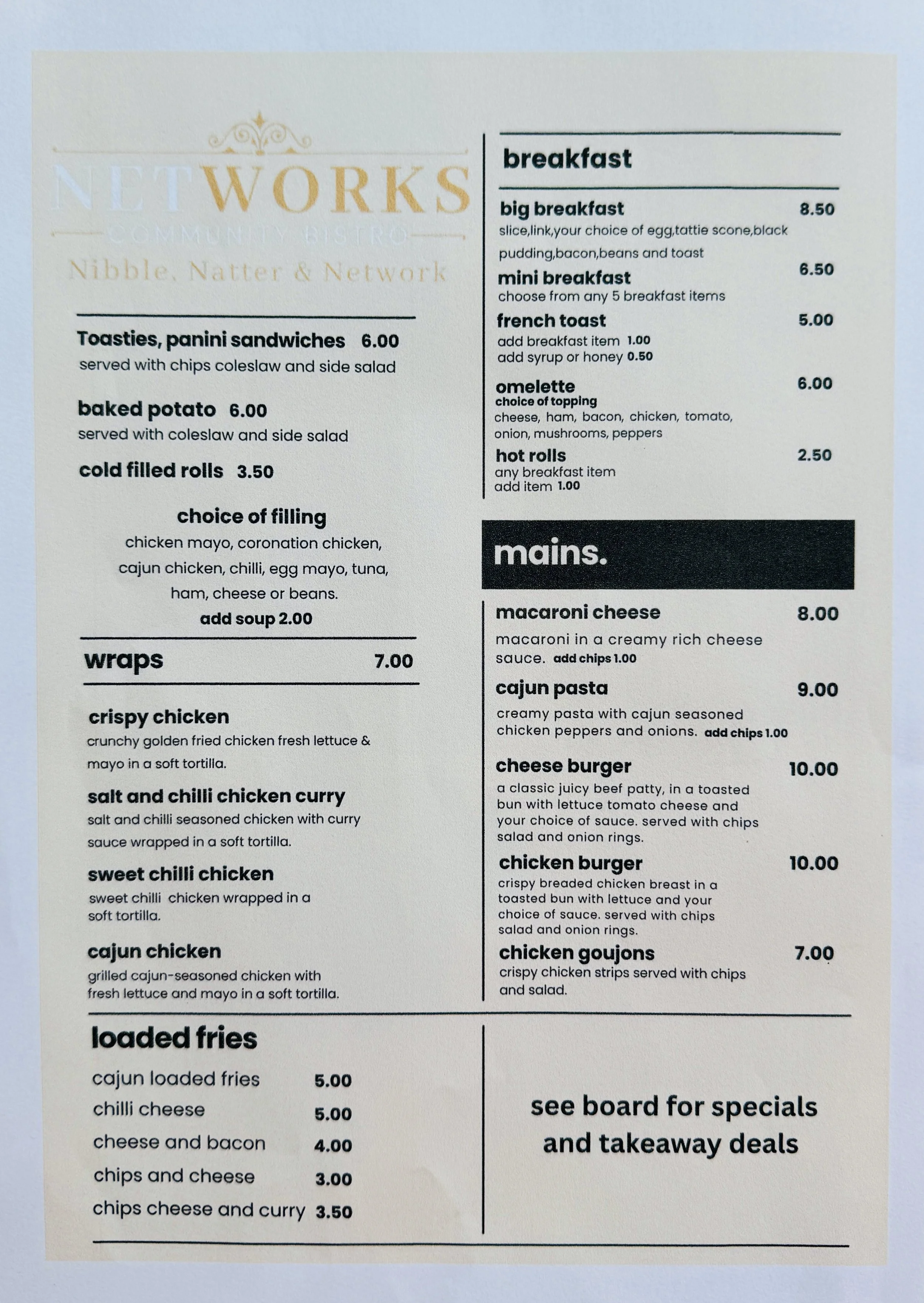 Networks Bistro is owned and operated by Radio City Association an OSCR registered charity SC042718